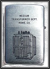This was a Special Made for the few Upper Management for General Electric for the New Transformer. The was Given to the President of General Electric and a Few Project Managers on the Day of the Unvailing in the early 1950's. As you can see the Zippo body and insert were made Specially with no lid, no Hinge were ever put onalso it was never even plated. Zippo (George Blaisdell) had a Very Special relationship with GE General Electric as they also made the ALLISON J-35 TURBO-JET Model also.